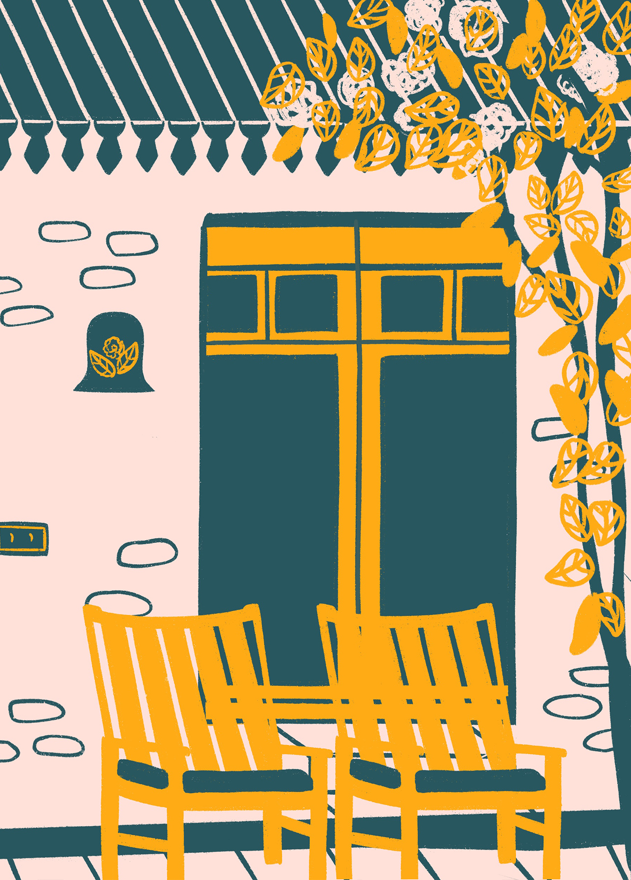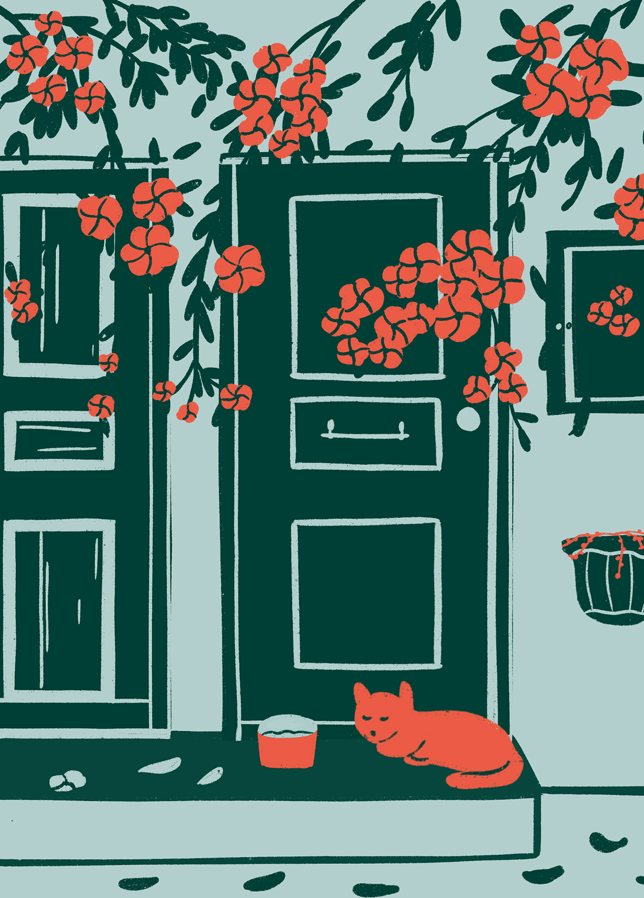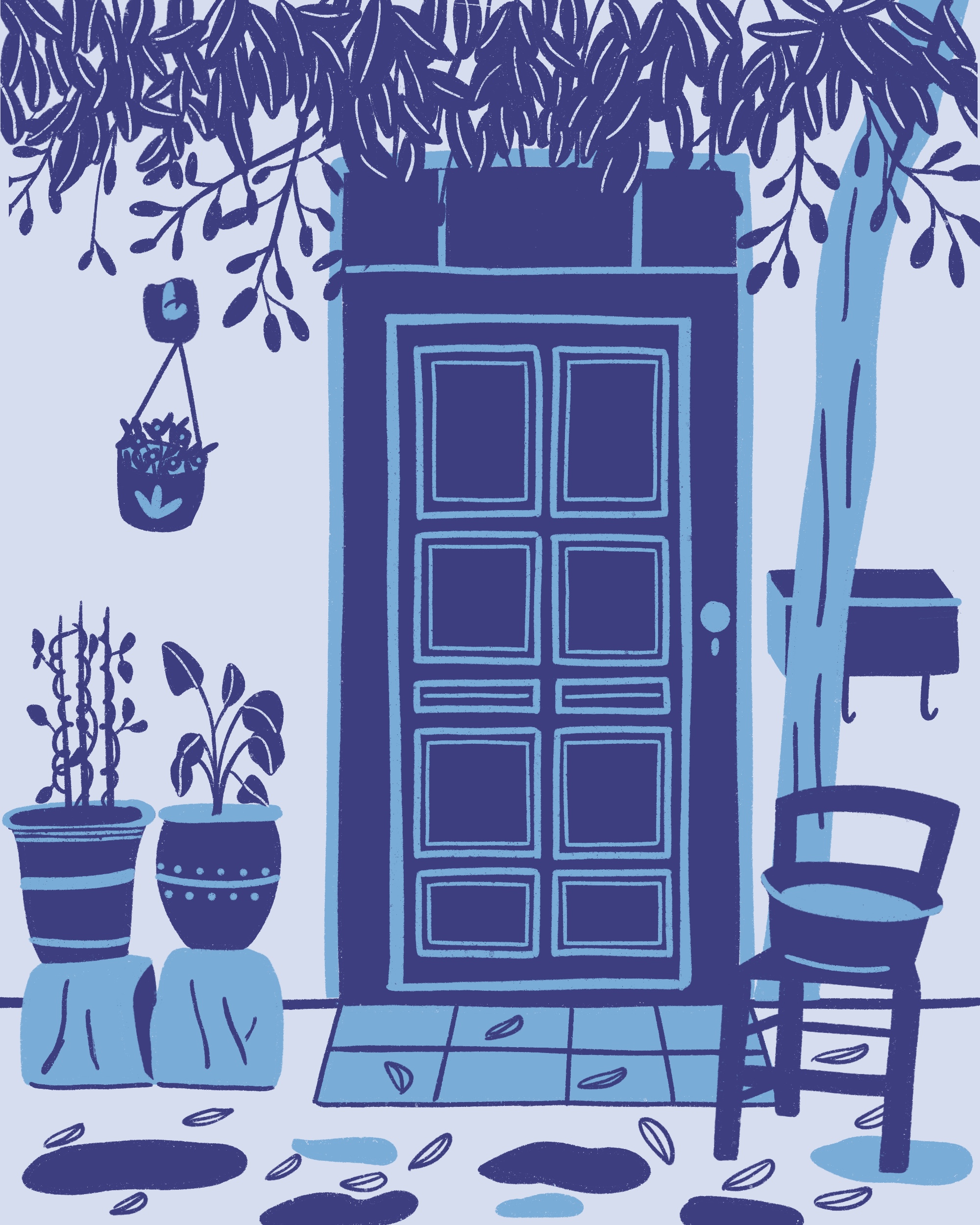 Limiting the use of only three colours for each artwork, I aimed to bring out the unique shapes and details of these lovely doors and their surroundings.