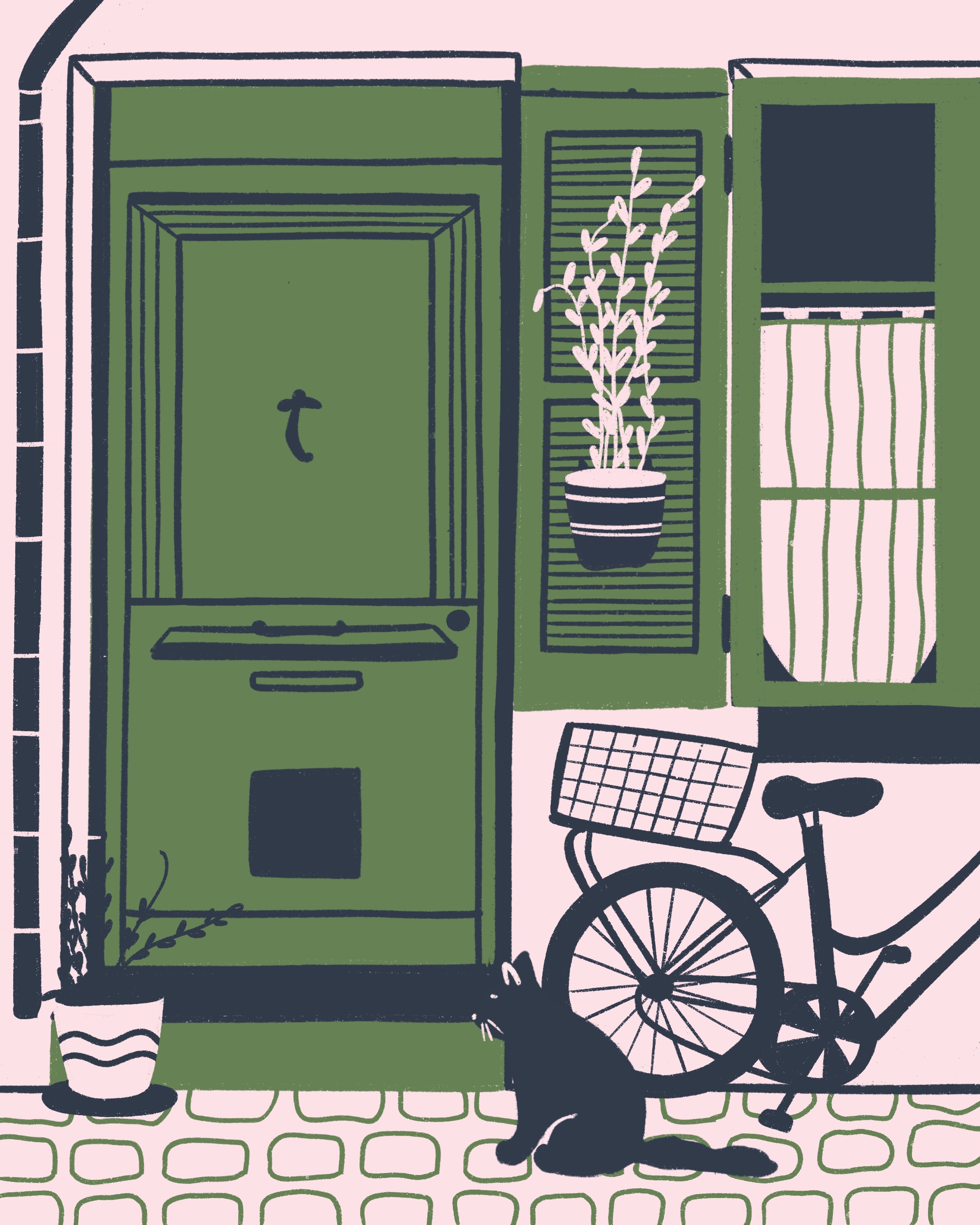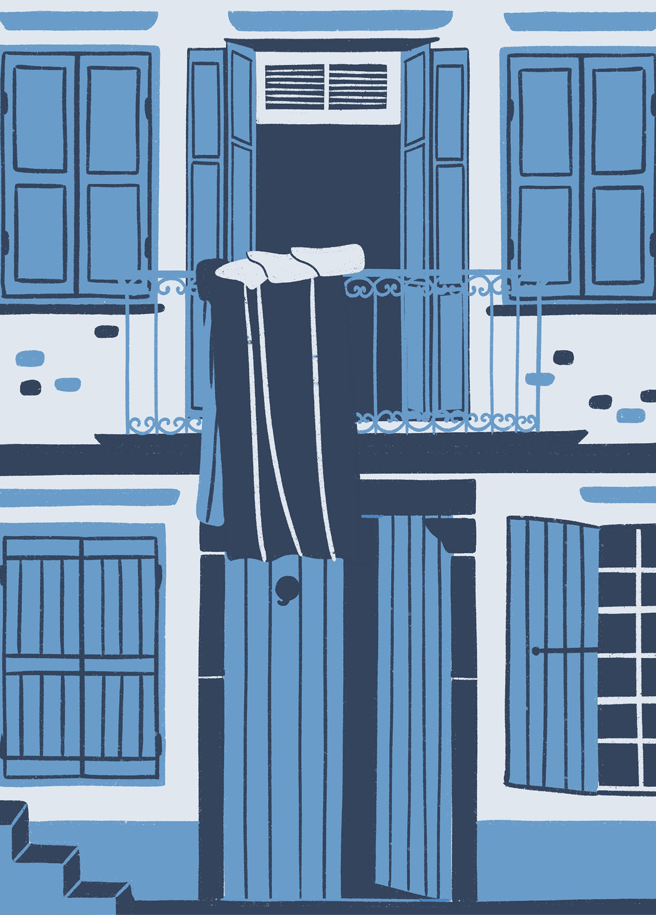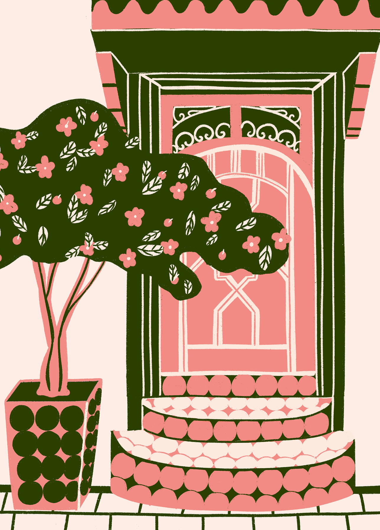 Limiting the use of only three colours for each artwork, I aimed to bring out the unique shapes and details of these lovely doors and their surroundings.