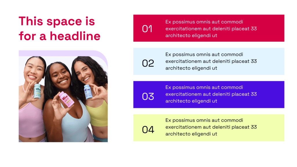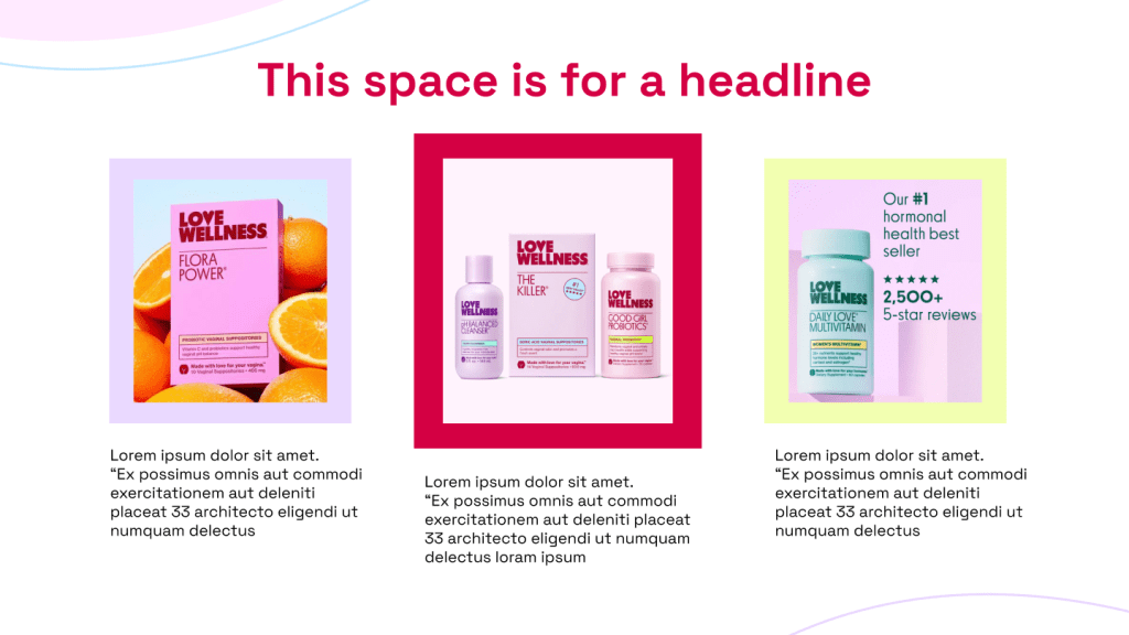 I worked as a freelancer to design a custom slide template for Love Wellness, aimed at enhancing the visual consistency and professionalism of their presentations. The goal was to create a versatile, easy-to-use template that reflects the brand’s personality while maintaining clarity and visual hierarchy across various content types.